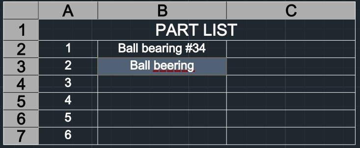 progeCAD Tabellen unterstützen AutoCAD® wie Text-in-place-Bearbeitung, numerische Zeilen und alphabetische Spalten.