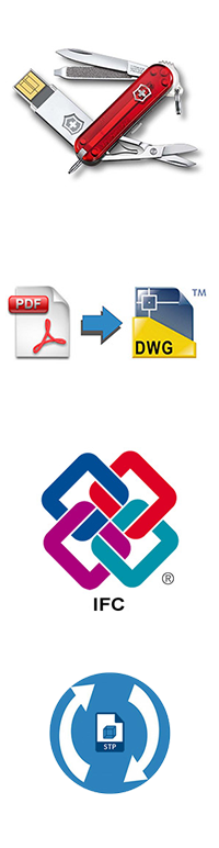 - STEP, IGES Import (und Export) von STEP-Geometrien mit Umwandlung in leicht bearbeitbare DWG-Objekte.